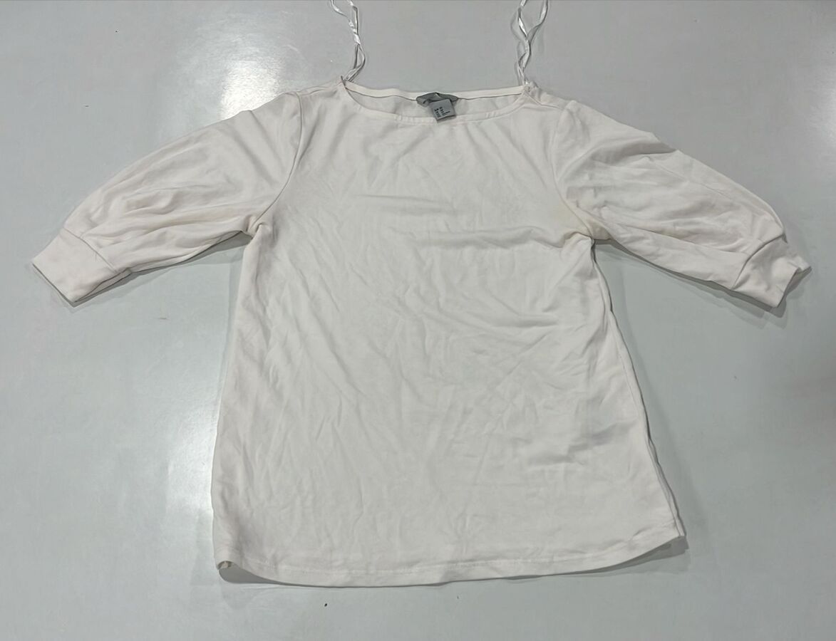 Soft solid white top with 3/4 sleeves