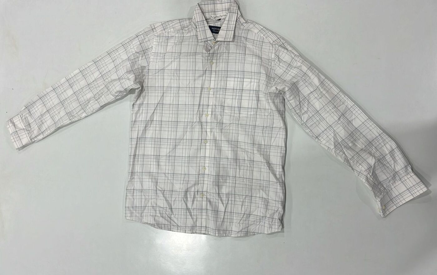 Clean white shirt with soft grey grid checks, perfect for formal meetings and office wear.