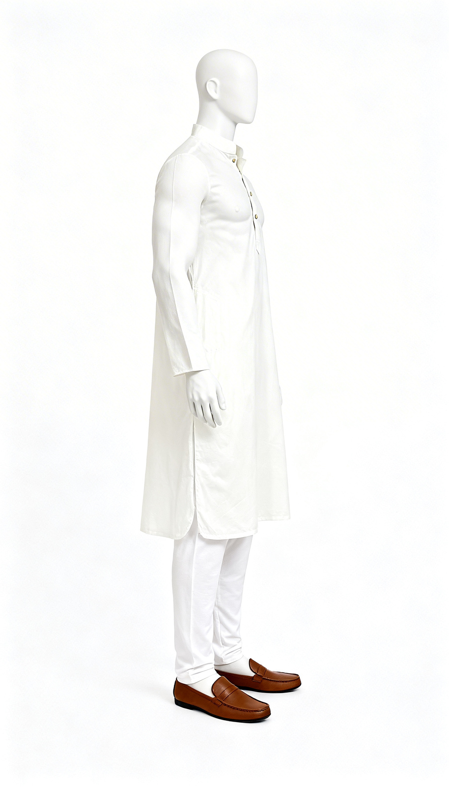 White classic kurta with long sleeves and clean construction, designed for formal ethnic settings with calm, composed appeal.