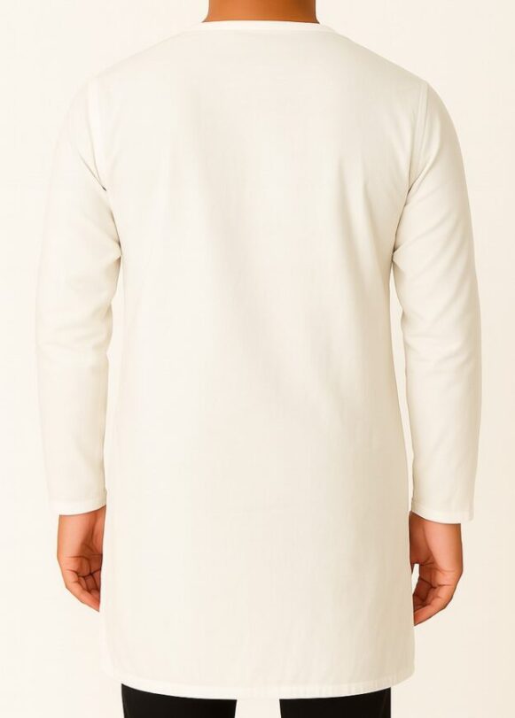 White Round Neck Kurta – Men’s, White cotton kurta with chest pocket and round neck – breathable and stylish for everyday or festive use.