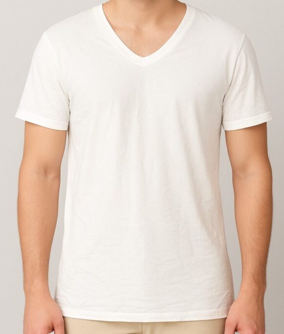 White V-Neck T-Shirt, Soft cotton V-neck T-shirt in white, designed with short sleeves and a tailored silhouette for daily comfort and minimal style. The V-neck design adds a subtle touch of sophistication, creating a flattering neckline that elevates a simple silhouette. Designed with short sleeves and a tailored fit, the t-shirt contours neatly to the body without feeling tight, offering a polished appearance that remains easy and relaxed. The crisp white tone enhances its timeless appeal, serving as a foundation piece that pairs seamlessly with virtually any outfit.