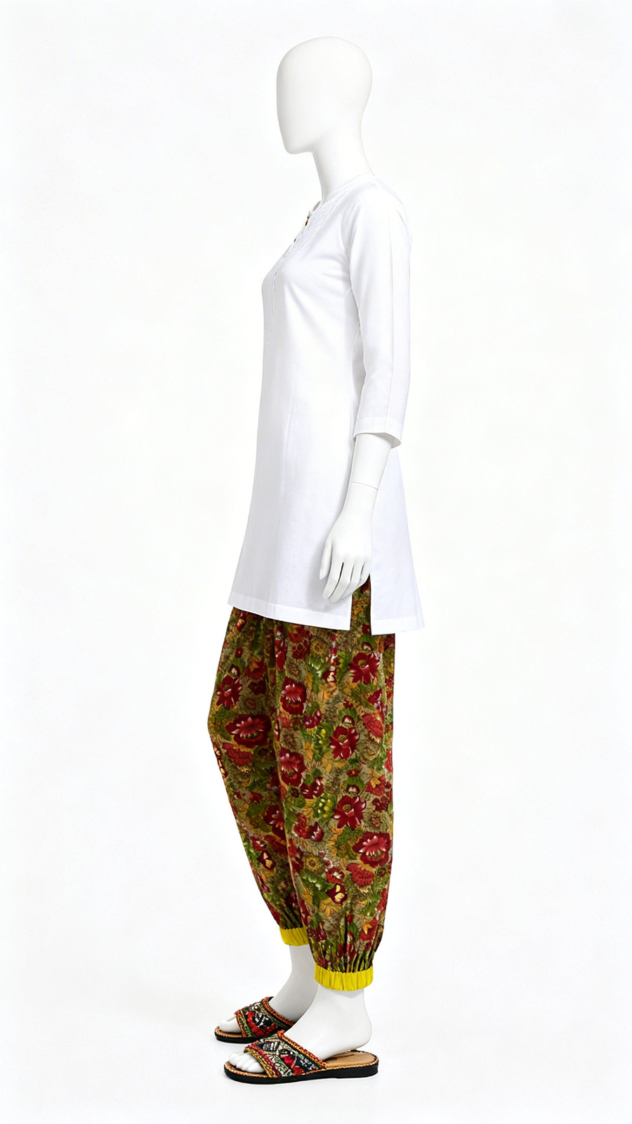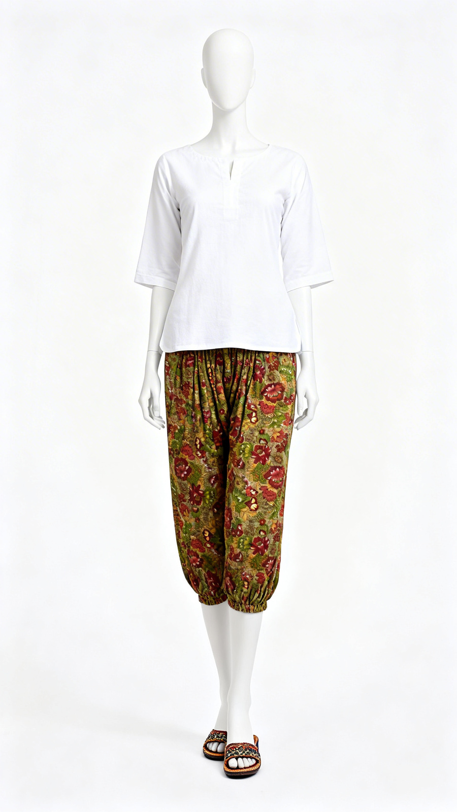 Bright multicolor floral Patiala pants crafted from soft, breathable fabric with a wide waistband and heavy pleated flare. Perfect for pairing with kurtis or ethnic tops for festive and casual wear.