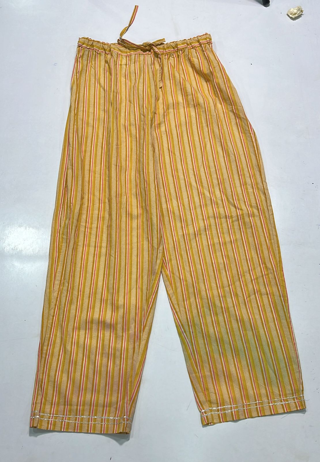 Yellow Striped Palazzo, Comfortable yellow wide-leg palazzo pants with striped pattern and elastic waistband for a stylish casual look. Brighten up your wardrobe with these Yellow Striped Palazzo Pants, designed to combine effortless comfort with eye-catching style. Crafted from a lightweight, breathable fabric, these palazzos drape beautifully and allow free movement, making them perfect for long days when you want to feel relaxed yet put together. The soft texture feels gentle against the skin, ensuring all-day wearability whether you’re at home, out shopping, or meeting friends.