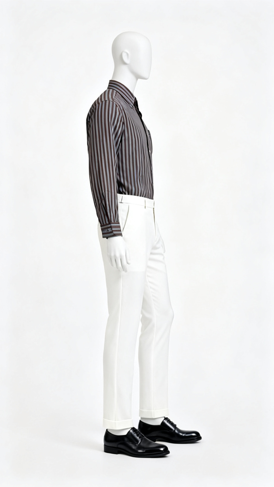 Elegant beige shirt with minimal horizontal striping, crafted for comfortable daily wear and polished formal styling.. This beige subtle stripe formal shirt offers versatile styling, comfort, and repeat-wear value.