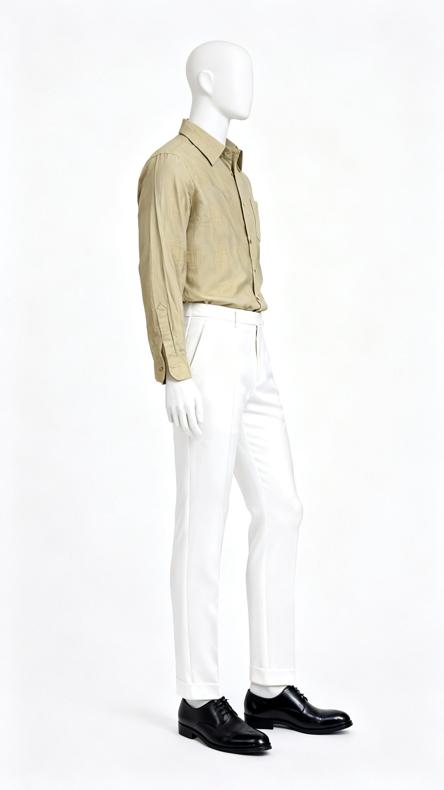 Soft cream plaid cotton-blend shirt with subtle beige checks, suitable for casual and semi-casual wear, light and breathable.. This cream soft plaid check shirt offers versatile styling, comfort, and repeat-wear value.
